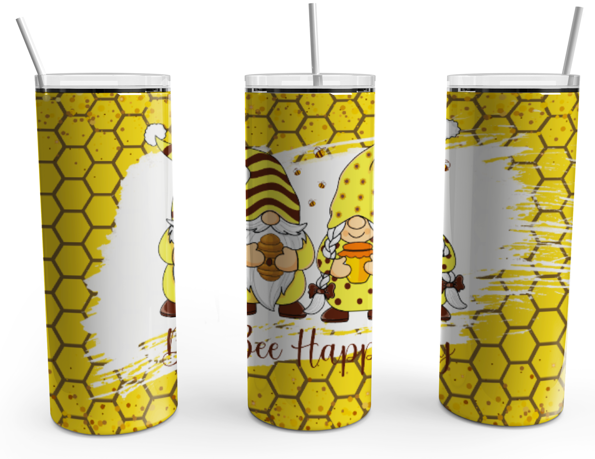 Bee Happy gnomes Design. Cute and adorable who wouldn't love a tumbler with this fun design Brighten any tumbler with their adorable personalities. Plus, it's the perfect gift to put a smile on someone's face.