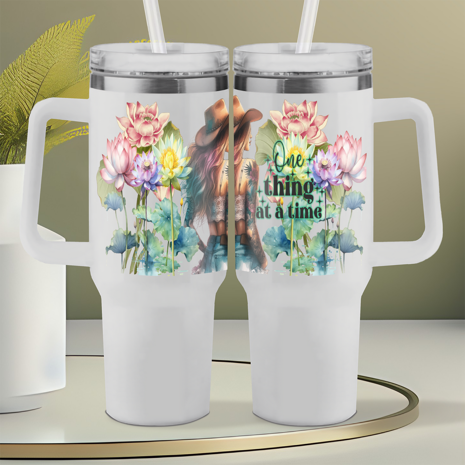 Stay focused and hydrated with our One thing at a time 40oz Tumbler Design. Keep your drink at the perfect temperature while reminding yourself to take things one step at a time. Perfect for busy days and a great reminder to stay present.